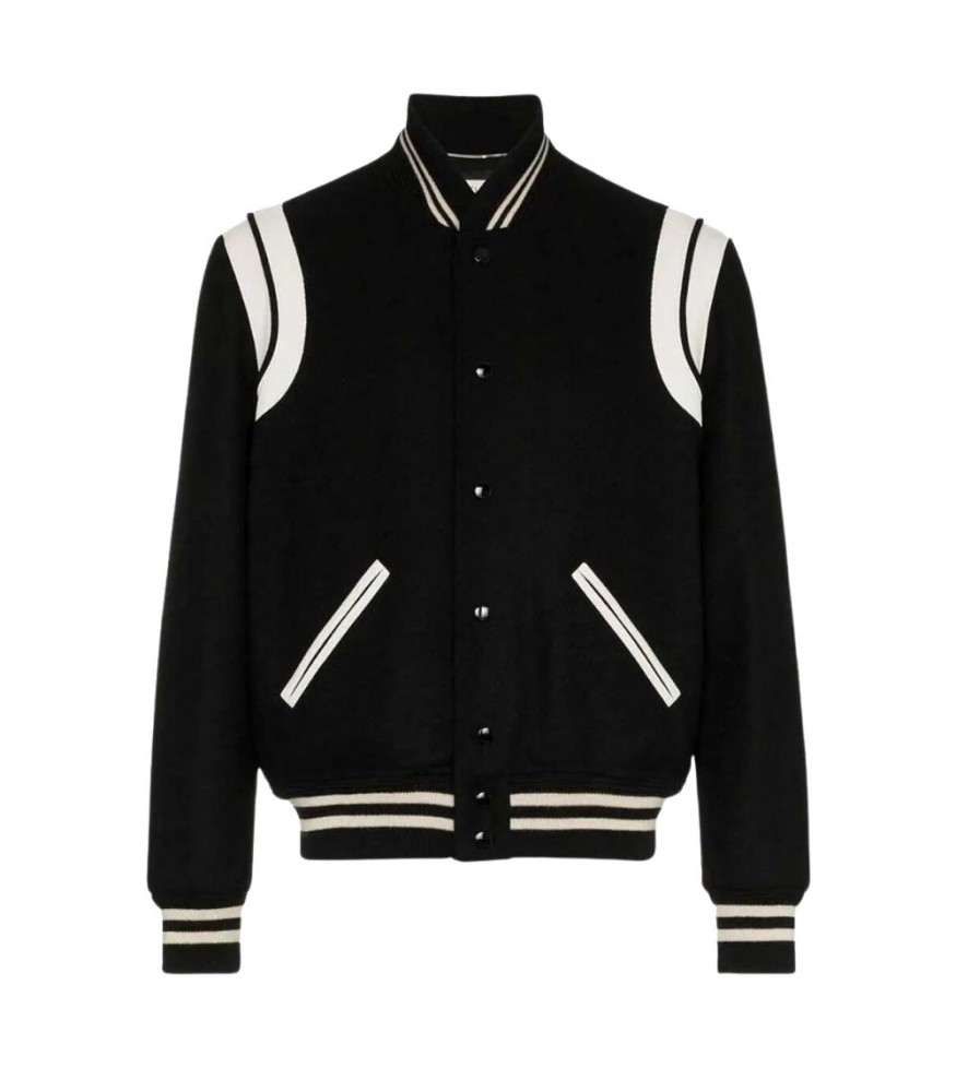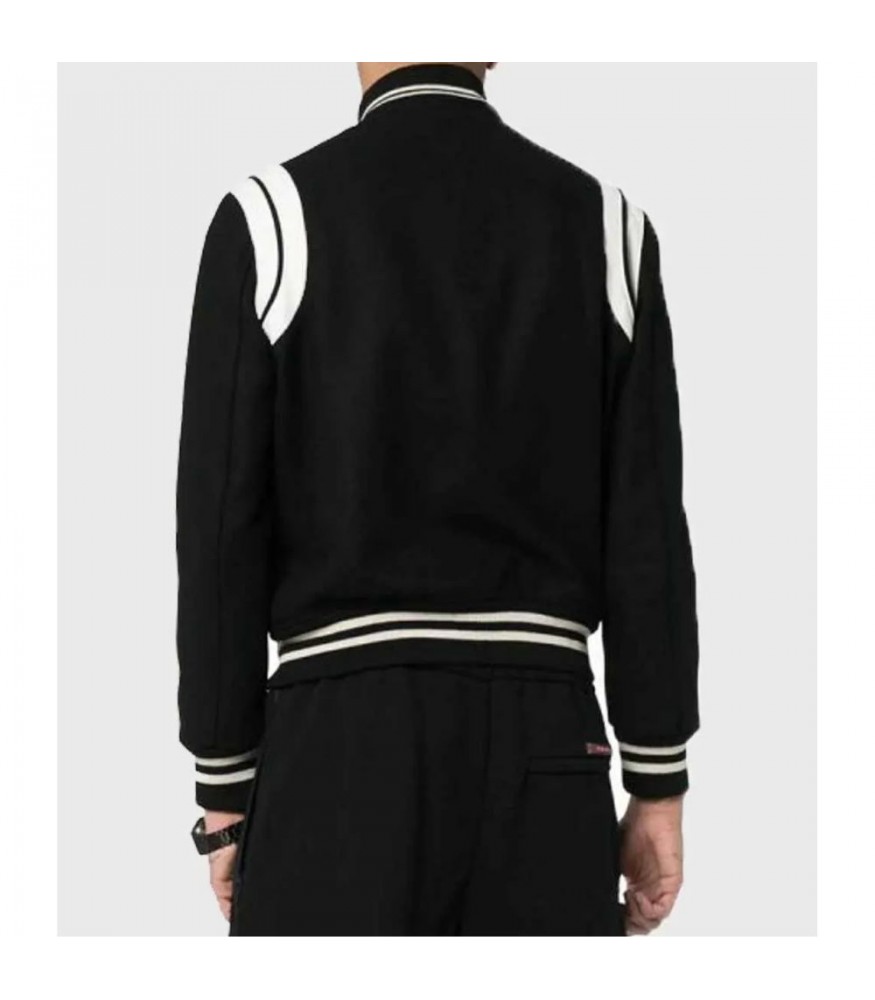 SLP Teddy Black And White Wool Varsity Bomber Jacket