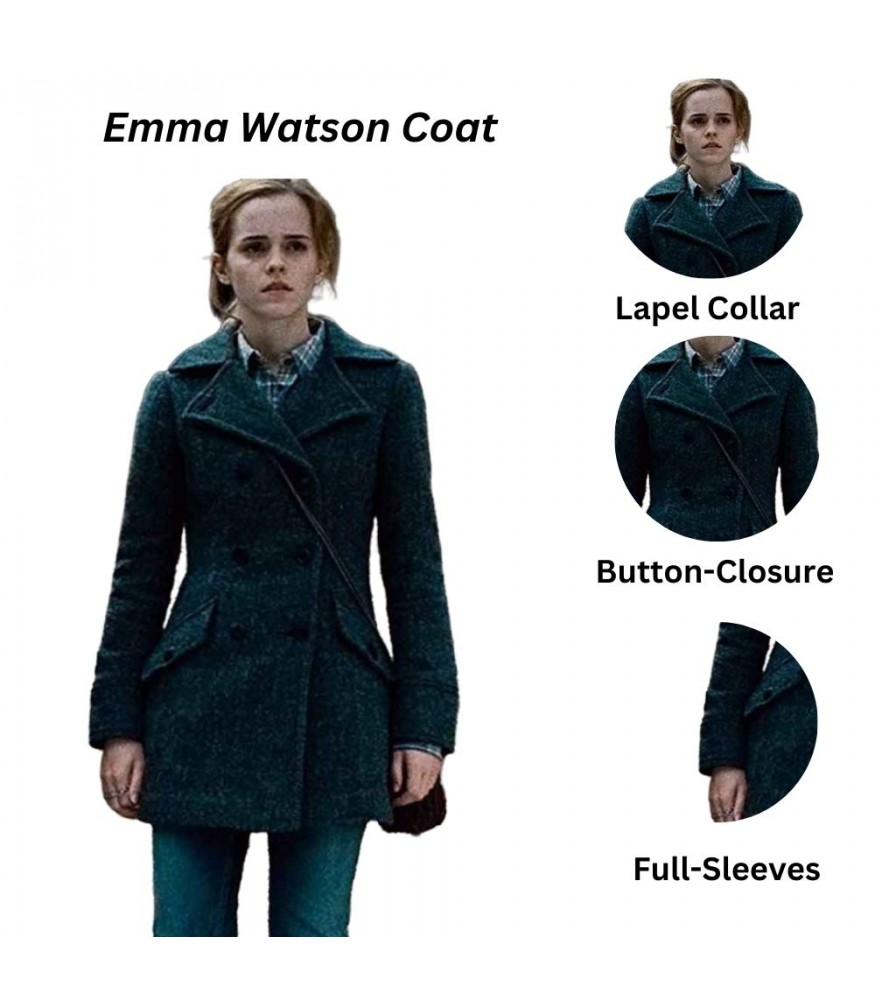In the Harry Potter and the Deathly Hallows world, the Hermione Granger Coat is inspired by the great and smart Hermione at the darkest time of the wizarding world. In Harry Potter and the Deathly Hallows, Hermione is a symbol of bravery, loyalty, and also of great style as she faces danger with her friends. Portrayed by Emma Watson, the character Hermione Granger wears practical yet very elegant outerwear, which shows growth and confidence. This grey wool coat did in particular do well because it puts movie meaning with real fashion together. According to Google’s best content, which is very helpful at present, we see that fashion buyers now prefer items that have a story, function, and true design, which this Harry Potter outfit does very well. It is perfect for winter wear, for travel, casual get-togethers, university days, or even formal events when you want a smart and intellectual look from your favorite character.