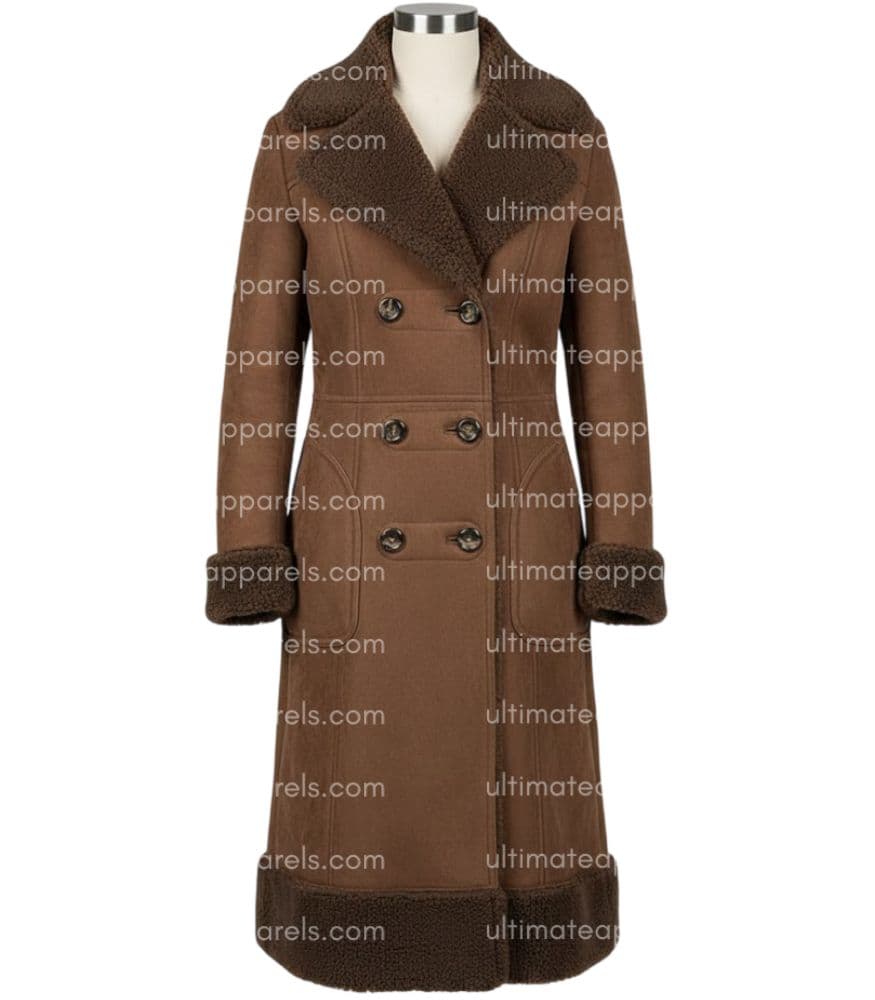 Everyone wants something trendy and comfortable, which has been inspired by the celebrity for sure, and if you are actually looking forward to such a beauty, you must then grab this In the Dark brown coat. It has been carried in the drama series In the Dark and worn by Perry Mattfeld. The making of this Murphy Mason coat amounts to being in suede leather material. The color of this coat is brown, and it looks pretty amazing in all aspects. The inner has been made of viscose, which ensures the comfort level of this coat with the longer length provided. The edging on the cuffs and the brown suede shearling coat has been done in shearling wool, and there is a closure of buttons with the pockets featured on the inside. There is a wide variety of sizes as well, and these sizes may also be customized if the buyers will, as per their own comfort and convenience.