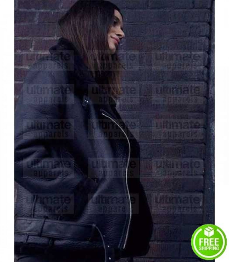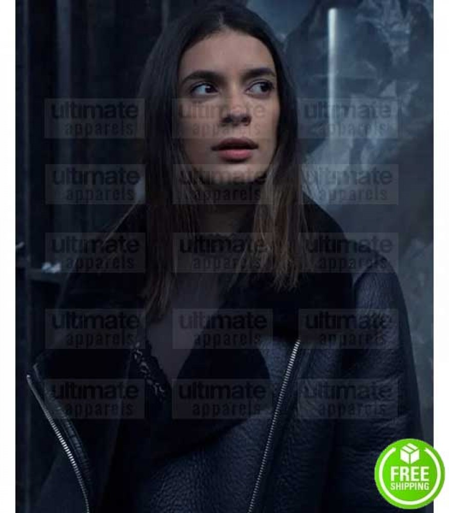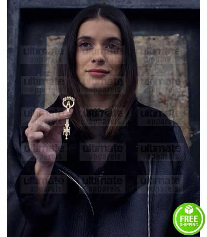 This is a fabulous black leather fur coat inspired by the outfit of Brazilian actress Laysla De Oliveira that she wore while portraying the character of Dodge in the Netflix thriller series Locke and Key. With large lapel collars lined with black fur, this coat is all you need to turn all eyes on you as you make your entry at a party or event. This black fur is also present on the cuffs and the waist. The jacket is soft to touch and keeps you comfortable all day long.