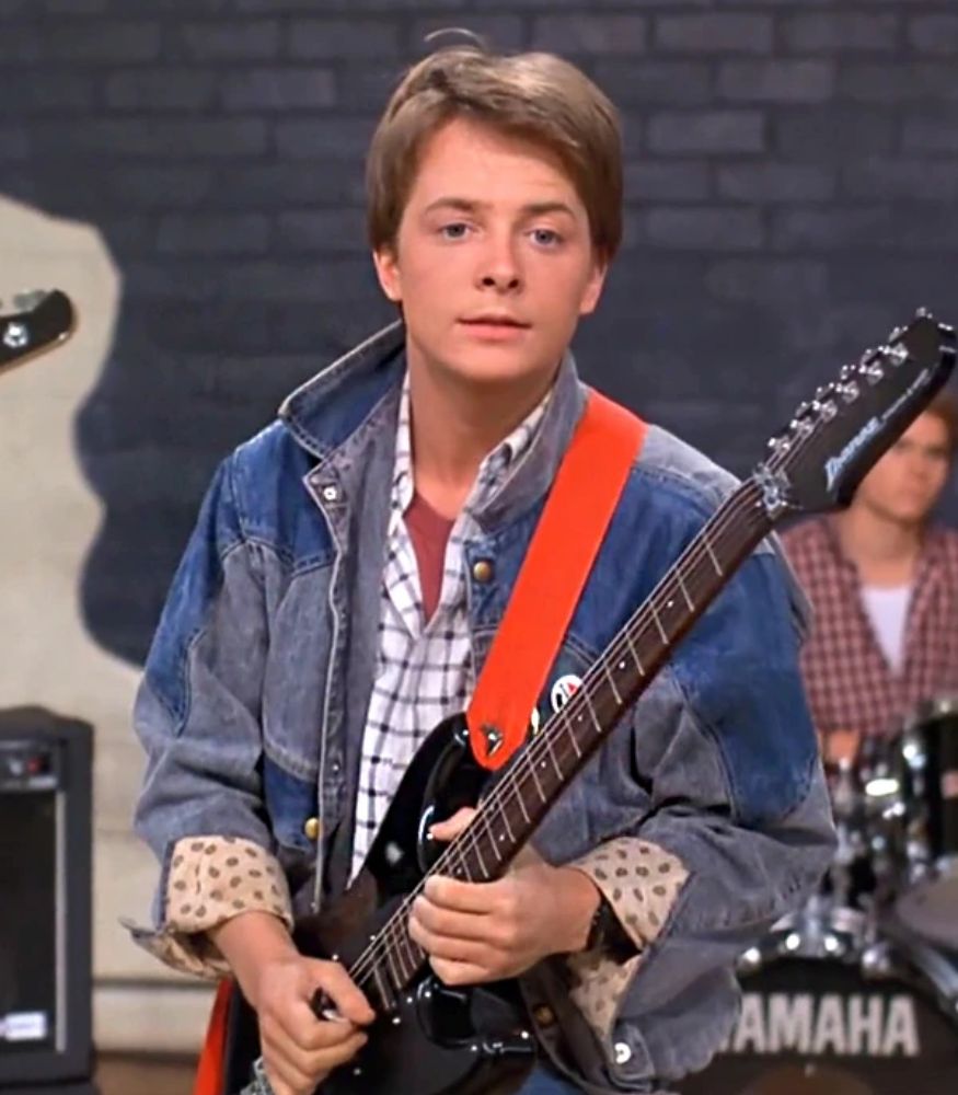 A. Marty donned his denim jacket, which was a main item in the 1985 scenes of the film and also what he wore in 1955 which he visits. It is very much a part of his rebellious and cool image. The jacket is a symbol of his travel through time and of his unique style that steps out of what is typical for each era.