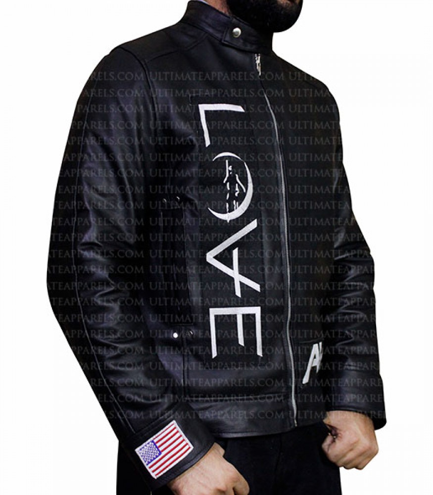 Tom DeLonge's best-selling black love jacket was a dramatic idea originally used by the great performer Tom DeLonge on the occasion of official tours of his amazing rock band famously named Angels and Airwaves for the sake of promotion of their 3rd studio super-hit album called “Love” in 2010; as a consequence, the Tom DeLonge apparel was named the Angels and Airwaves jacket. Fans were superbly delighted by his amazingly unique style of wearing this creative outfit with the most outstanding message of adoration. Thereby, it became very popular in 2010, but now we just have it for you in the mold of a perfect replica jacket that is exactly of the same appealing design and quality as the original.