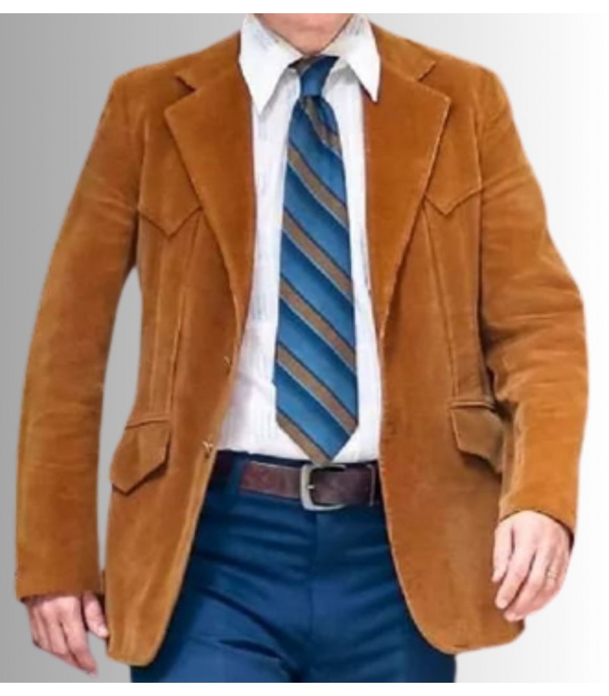 The Crowded Room 2023 Will Chase (Marlin Reid) Brown Velvet Blazer elevates your formal attire. It is a modern craft with a voguish brown color and mod features that up the ante on your appearance. By pairing this unique clothing with wedding festivities or business meetings, you may make your character even more sophisticated. The Blazer's superb craftsmanship provides the user with top-notch fashion and functionality. With the highest quality velvet fabric used in its construction, we were able to create an item that is both robust and nice to the touch on the exterior. Additionally, it has a viscose lining that is quite comfortable against the wearer's skin and adds to the interior's overall softness. Moreover, we sewed the lapel collar and front button closure to keep it looking fashionable and attractive forever. The long sleeves knit button cuffs give the outerwear's fit a trimmed and elegant appearance. Put your hands on it to complete your formal appearance.