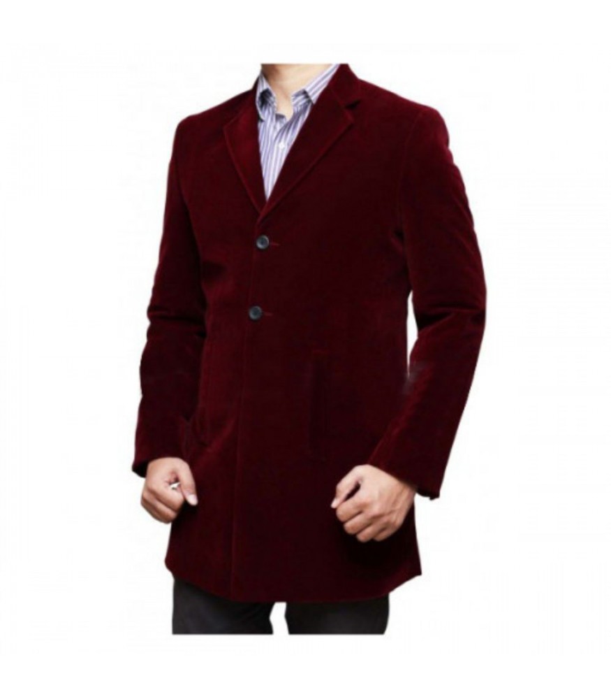 Peter Capaldi in Doctor Who brought a fresh and distinct style to the Time Lord's wardrobe, particularly with Peter Capaldi's signature maroon velvet coat. This elegant and eye-catching garment quickly became an iconic piece for the fans. The outer layer exudes a sense of reality and sophistication, perfectly befitting the mature and authoritative demeanor of this personality. The rich color and luxurious texture of the fabric add depth and visual interest to the character's overall appearance. Unquestionably, it is a unique blend of classic and contemporary fashion sensibilities. The top layer’s tailored fit and striking silhouette can help anyone who loves individuality and wants to stand out in these situations. The recreation of this personality in Cosplay and other dress competitions is not tough, because attire offers the simplest features that could enhance anyone’s persona, like a lapel collar, and the front two buttons are the signs of elegance. Extra length with full sleeves ensures maximum comfort.