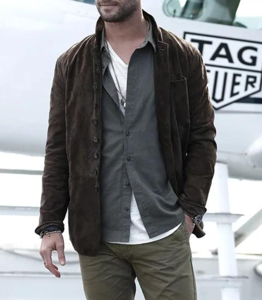 Crafted to perfection, the Chris Hemsworth Extraction 2 Jacket showcases a fusion of contemporary design and premium materials. The jacket features a brown suede exterior that not only exudes elegance but also ensures durability. The suede material adds a distinctive texture, setting it apart from conventional leather jackets.