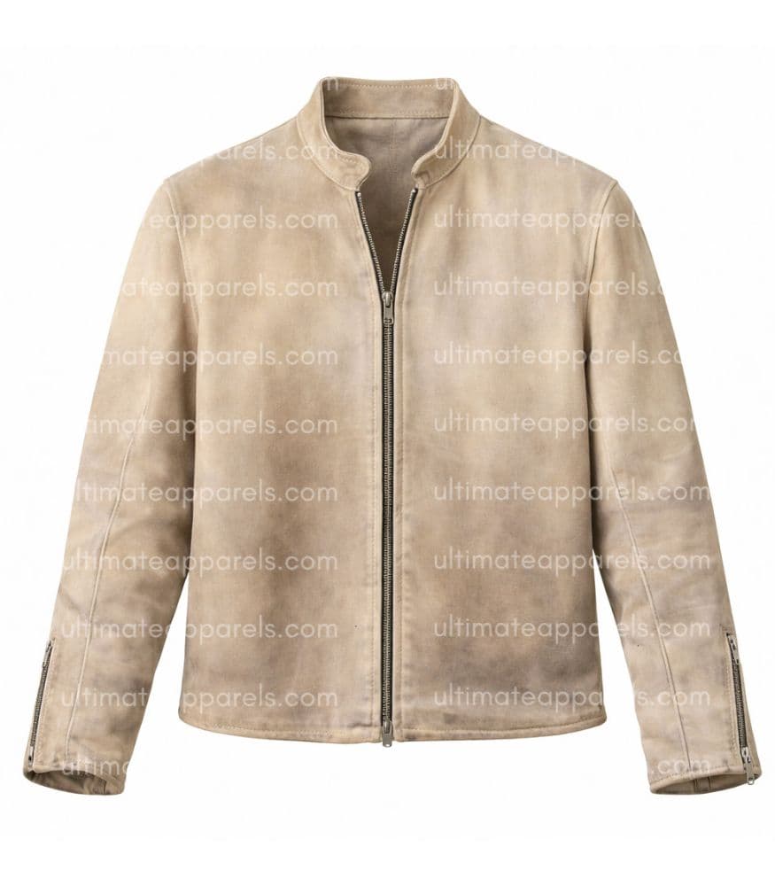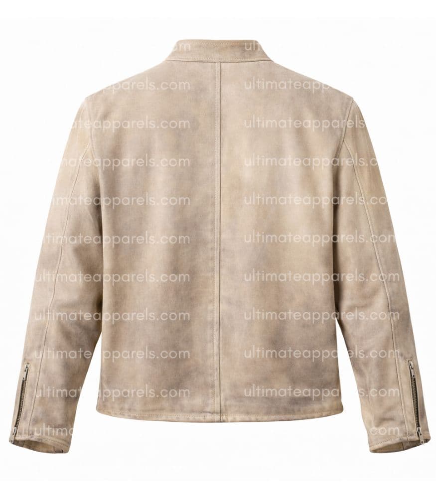 Proper maintenance is key to keeping the beauty of this Jason Momoa jacket. Do not put it in the wash; instead, use a suede brush to remove dust, which in turn will keep the texture looking great. Store it in a cool, dry area away from the sun to prevent color from fading. If it does get wet, let it air dry naturally and do not use artificial heat. Also use a breathable garment cover for protection, which will help its longevity. This beige leather jacket does best in dry weather to preserve its finish and structure.