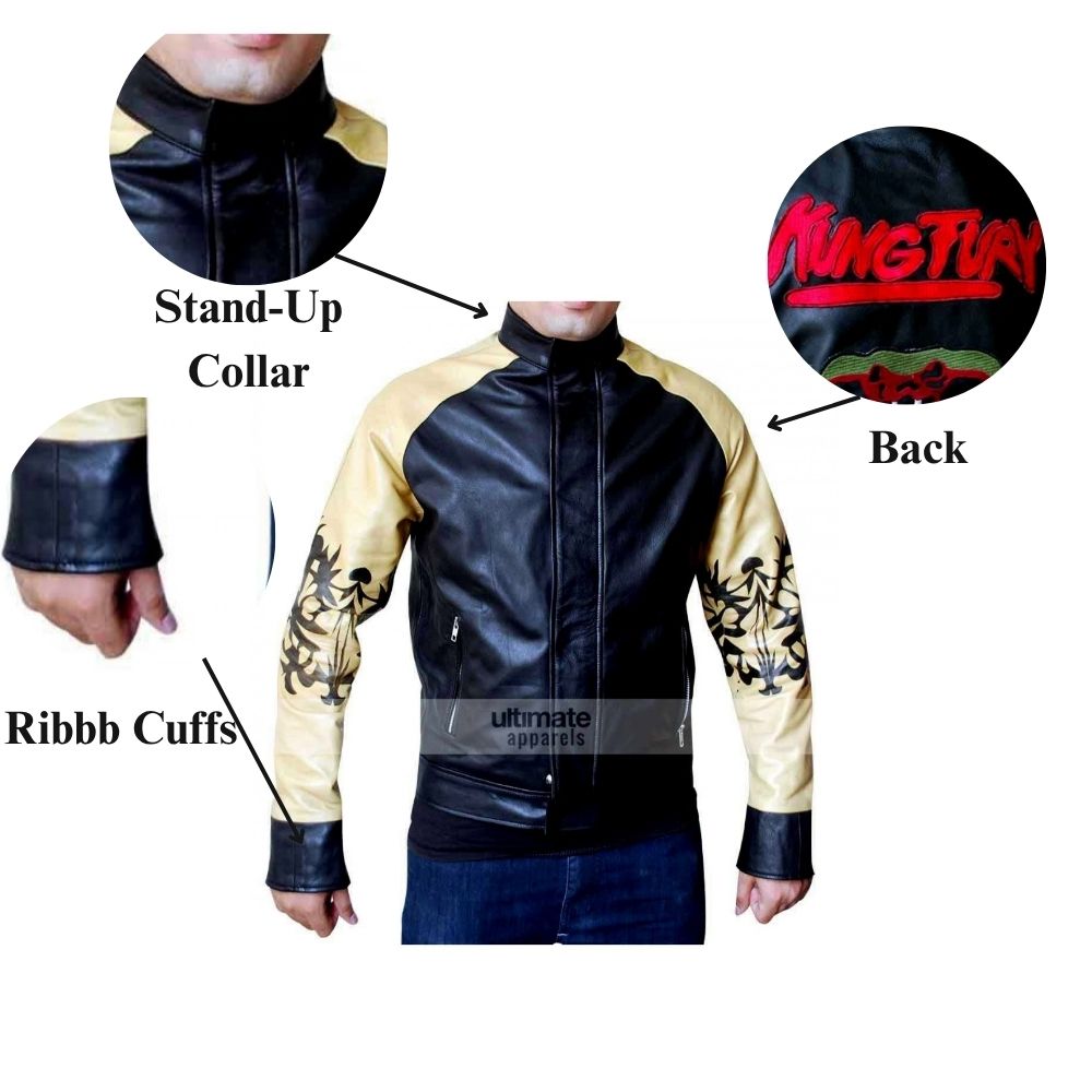 Wrought from a mix of real and faux leather, this jacket sets out to do what it says on the tin: be tough yet still soft. We have an inner viscose lining, which gives it that super soft feel against the skin. Also we have the stand-up collar and the dual zip and button closure, which give it that modern look. We present to you a very striking black and beige color scheme, which also plays into the design. This piece includes two front pockets and two inner pockets for that practical touch. We see full-length sleeves with ribs at the cuffs, which brings in that classic biker-inspired look we all love, which at the same time also has that functional edge. This David Hasselhoff jacket is for the cosplayer that wants the real deal or the fashion-forward person that wants that standout streetwear piece.