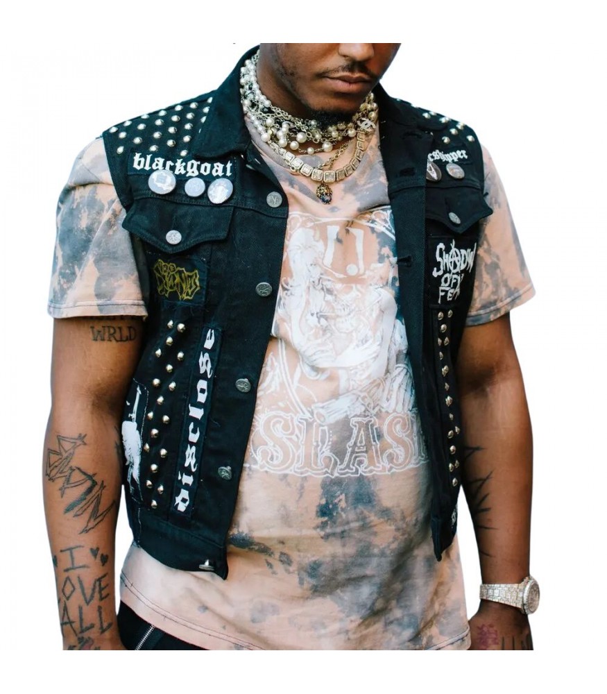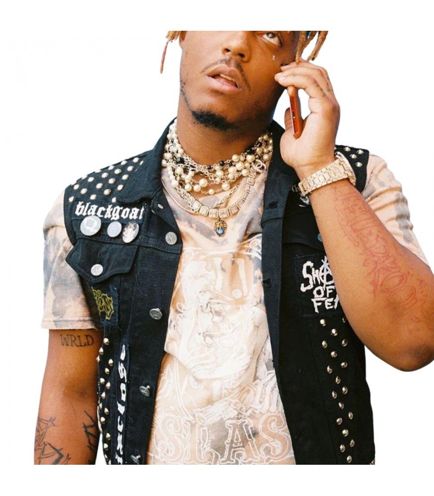 Answer: This Black Studded piece by Juice WRLD is to be worn at concerts, casual meetups, and music-oriented events or as a statement piece over your favorite hoodies and tees in the fall and spring for that bold and expressive streetwear look.
