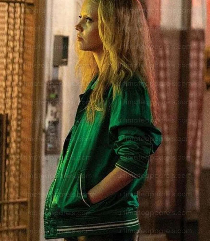 The 2024 MaXXXine Maxine Minx Mia Goth Jacket is inspired by A24’s much-awaited horror thriller MaXXXine, which sees Mia Goth play again the role of Maxine Minx. Set in the tough setting of 1980s Hollywood, the film, which plays with psychical horror and retro fashion, makes Maxine’s wardrobe a focal point of the character. The Maxxxine Jacket plays into Maxine’s confident and rebellious persona, which is a mix of vintage varsity style with modern streetwear. This Maxine Green Jacket is more than a costumery piece; it is a statement for fans of film fashion who want to put out an image of strong and unapologetic energy in their day-to-day looks. Whether you are a film buff or a trend-forward dresser, the Maxxxine Green Jacket brings to life story and style in one great outerwear piece.