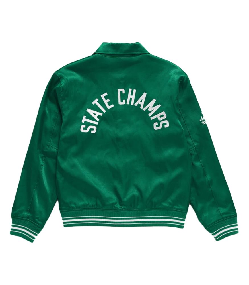 Crafted with attention to every detail, this green varsity jacket has satin as its exterior material, which in turn gives it a smooth, almost glossy finish that raises the bar on what you’d expect from a premium piece. Viscose lining was put in for your comfort and also for easy breathability, which in turn makes for a great wear experience over the long term. We went with a button-front closure and a classic shirt-style collar, which at the same time preserves that classic varsity look. Also standing out is the rich green color, which really does that eye-catching thing very well. Also, we included two front pockets and one in the interior, which we did for practicality. Also note the full-length sleeves, which we put in for casual get-togethers, movie dates, fan events or just that for which you want a bold yet put-together look.