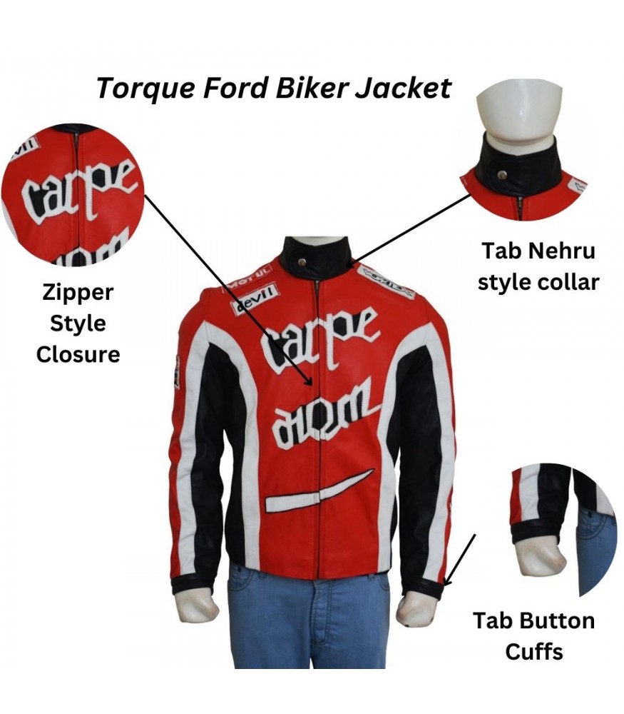 The Torque had very little in terms of plot, but it did a great job at popularizing motorcycle and racing style, which is still to this day a hit among bike enthusiasts. In the film Martin Henderson does the portrayal of the daring rider Cary Ford, which we see through his intense riding skills and out-there personality, which is also present in the character's iconic Carpe Diem jacket. That red race outfit was a hit with the audience of moviegoers and fans of biker fashion. The Torque Movie Jacket is a takeoff of that great look; what they did was to combine cinema style with that of real-life riding gear. For those into fast bikes, racing culture, or just classic movie looks, the Carpe Diem Leather Jacket does an amazing job at bringing back the freedom, speed, and self-confidence, which is what the film’s biker world was all about.