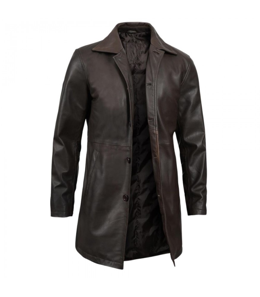 Material: Crafted from premium, genuine dark brown leather, this car coat exudes a vintage-inspired look. The leather is not only durable but also soft to the touch, ensuring comfort and longevity.