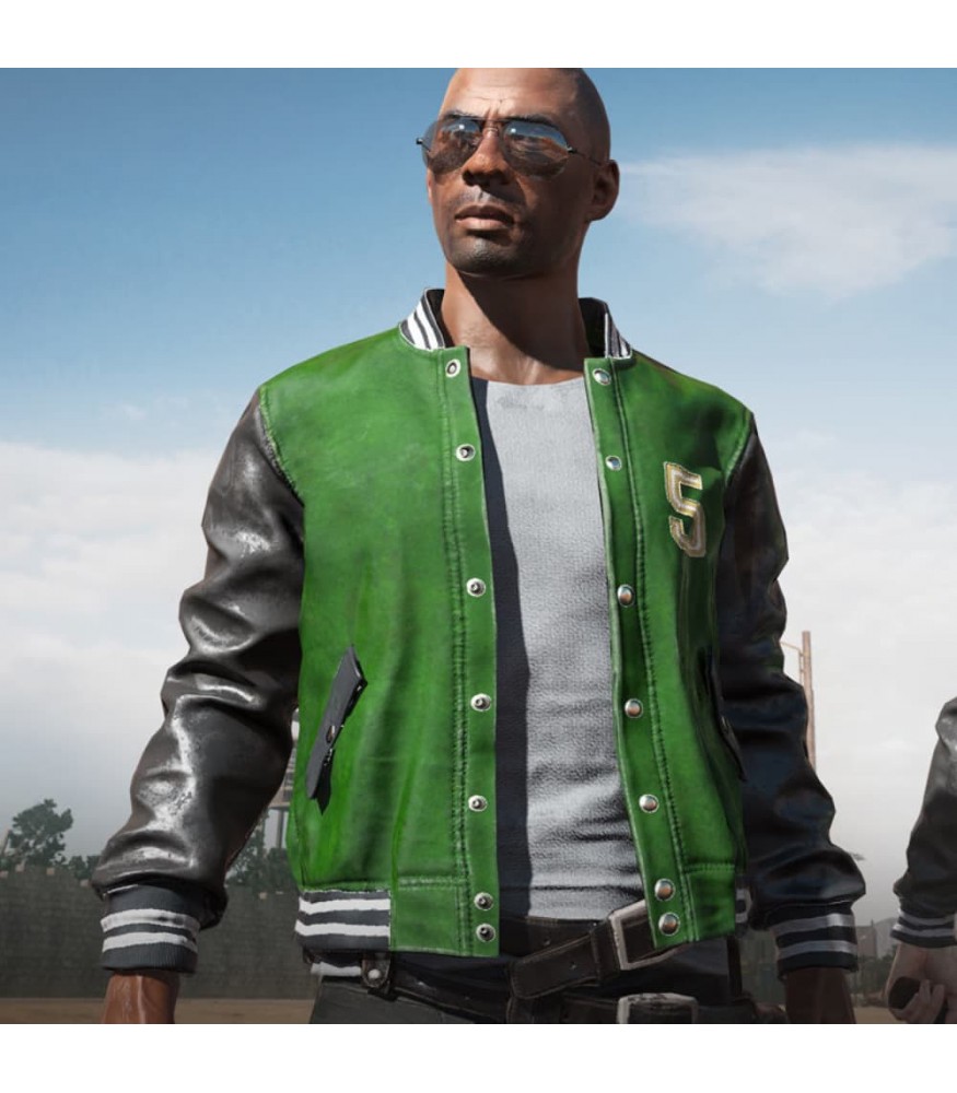 Embark on a sartorial journey through the gaming universe with the PUBG 5M Green Varsity Bomber Jacket, a fusion of gaming aesthetics and street-style sophistication. This bomber jacket goes beyond being a piece of clothing; it's a statement that encapsulates the spirit of PUBG's dynamic landscape.
