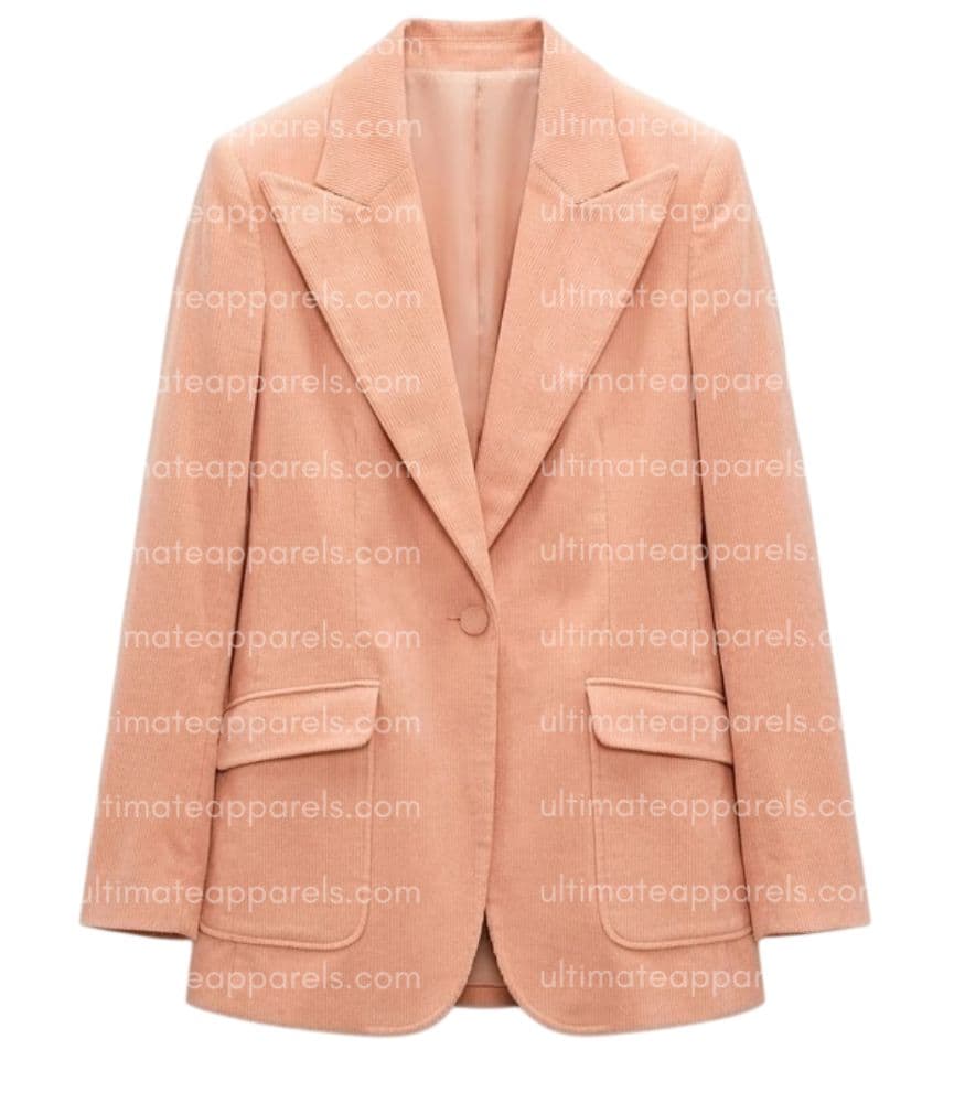 Presenting in a premium corduroy fabric, the Shrinking S03 Blazer also brings in a great texture and durability, which in turn gives a stylish yet very comfortable wear. The inner viscose line brings in an element of breathability, which in turn makes it a great choice for all-season wear. We have a peaked lapel style collar, which brings in a sharp and structured look to this Liz Pink Blazer. Also, we have the zip front closure, which gives a modern twist to a classic design. Full-length sleeves with buttoned cuffs, which in turn add to the tailored look and also see to it that it fits well into various body types. The bright pink color, which is a standout feature, takes the entire Shrinking S03 Outfit to the next level. Also, it does so in a way that it pairs great with neutral trousers or denims. As a Liz movie outfit, it does a great job in terms of character authenticity and also everyday wear; in fact, it is a must-have for Liz fans and trendsetters.