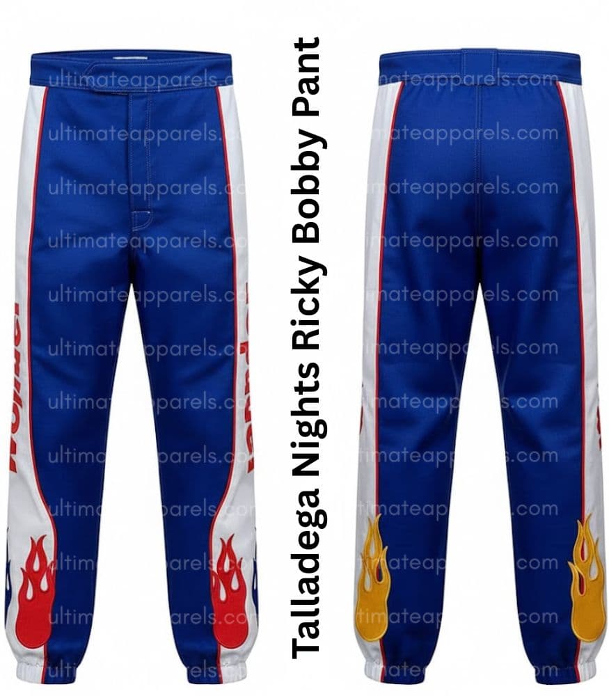 The comedy classic Talladega Nights: In Talladega Nights we were given the great racing character in the person of Ricky Bobby as brought to life by Will Ferrell. Ricky’s large personality, fearless approach, and flamboyant style made his looks just as remembered as his quotes. We present these Ricky Bobby Pants, which are a play on that bold, over-the-top racing theme, designed for those that go for a standout look and a film-based wardrobe. Great for cosplay events, theme nights out, biker fashion, or just modern streetwear, these pants bring the feel of the racetrack and performance into everyday wear. If you are into character-based clothing that is going to get you noticed, Talladega Nights Pants put movie magic into your real-life fashion, and at the same time, we have modern style at heart.