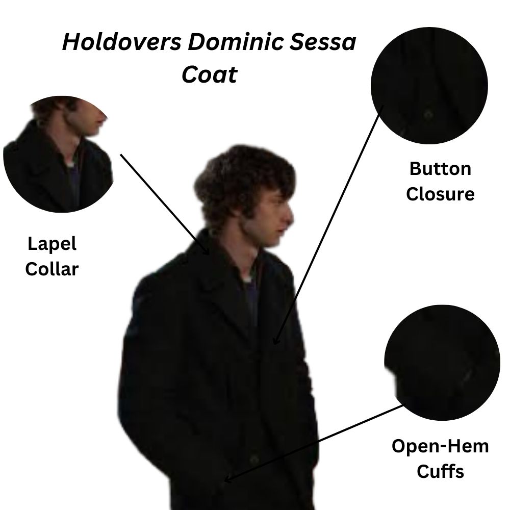 The Holdovers 2023 Dominic Sessa (Angus Tully) Black Wool Coat: Jazz Up Your Classic Chic A tribute to the endured ditty aesthetic of the movie effects, this luxury wool coat is inside super warm and chic. This fashionable jacket with buttoned closure and lapel collar is made even better with viscose lining for more comfort. Full-length sleeves and open-hem cuffs round out the chic silhouette, making it a truly versatile addition to any closet. Ideal for cold weather or a somewhat dressier night on the town, this coat mixes retro-flavored style with new interest.