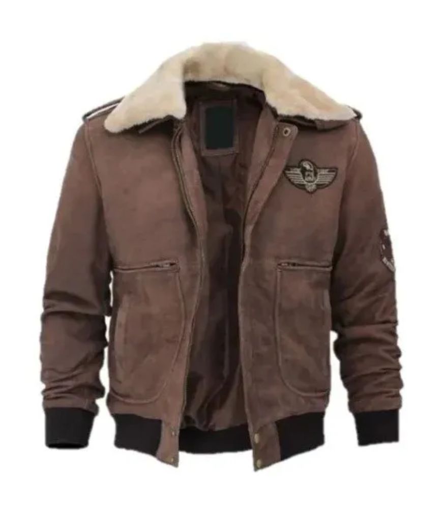 Elevate your style to new heights with the Top Gun Suede Leather Jacket—a timeless piece that combines classic aviation aesthetics with modern fashion sensibilities. Crafted with meticulous attention to detail, this jacket is a tribute to the legendary Top Gun franchise and the iconic bomber jacket design. This jacket is expertly crafted from premium-quality suede leather, ensuring both style and durability. Suede is renowned for having a smooth, supple texture that makes it wonderfully cozy to wear. The rich brown hue of the suede adds a touch of elegance while maintaining a rugged edge, embodying the spirit of aviation adventure. The Top Gun Jacket boasts a classic bomber silhouette with clean lines and a versatile appeal that suits various occasions and personal styles. The brown suede exterior offers a sophisticated yet relaxed appearance, making it a versatile addition to your wardrobe. The jacket is available in various sizes, ensuring a comfortable and tailored fit for individuals of all body types. The rib-knitted cuffs, collar, and waistline are iconic elements of bomber jackets that provide a snug and comfortable fit while enhancing the jacket's overall design. These rib-knit details not only add an extra layer of warmth but also contribute to the jacket's distinctive silhouette. Whether you're a devoted Top Gun enthusiast or simply appreciate the classic appeal of leather jackets, this garment is designed to cater to your style needs. Wear it to complete a rugged, aviator-inspired look, or use it to add an edge to your everyday attire. The front zipper closure ensures ease of wear, while the rib-knitted cuffs and collar help seal in warmth. Two spacious side pockets provide convenient storage for your essentials while on the go. The Top Gun Suede Jacket is the embodiment of classic style and adventure, paying tribute to the world of aviation and the iconic Top Gun franchise. With its premium suede leather construction, rich brown color, and rib-knit details, it's the perfect way to channel your inner aviator and make a bold fashion statement.