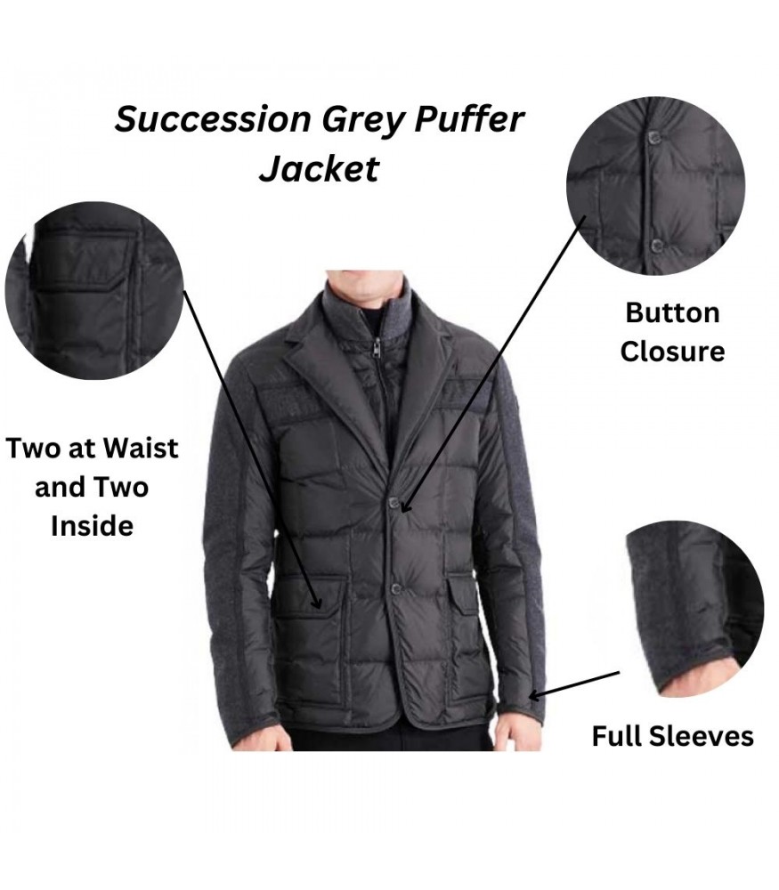 The Succession collection brings you Jeremy Strong’s Kendall Roy’s style. We see in him the classic puffer and the sharp grey jacket, which bring a touch of class at the same time as a casual edge, which is very much a part of his character. Made with superior materials that are at the same time comfortable, warm, and elegant, we see in these jackets a true reflection of Kendall’s on-screen persona. Whether it is for a casual day in the office, a winter getaway, or a formal dinner, these jackets go the distance.