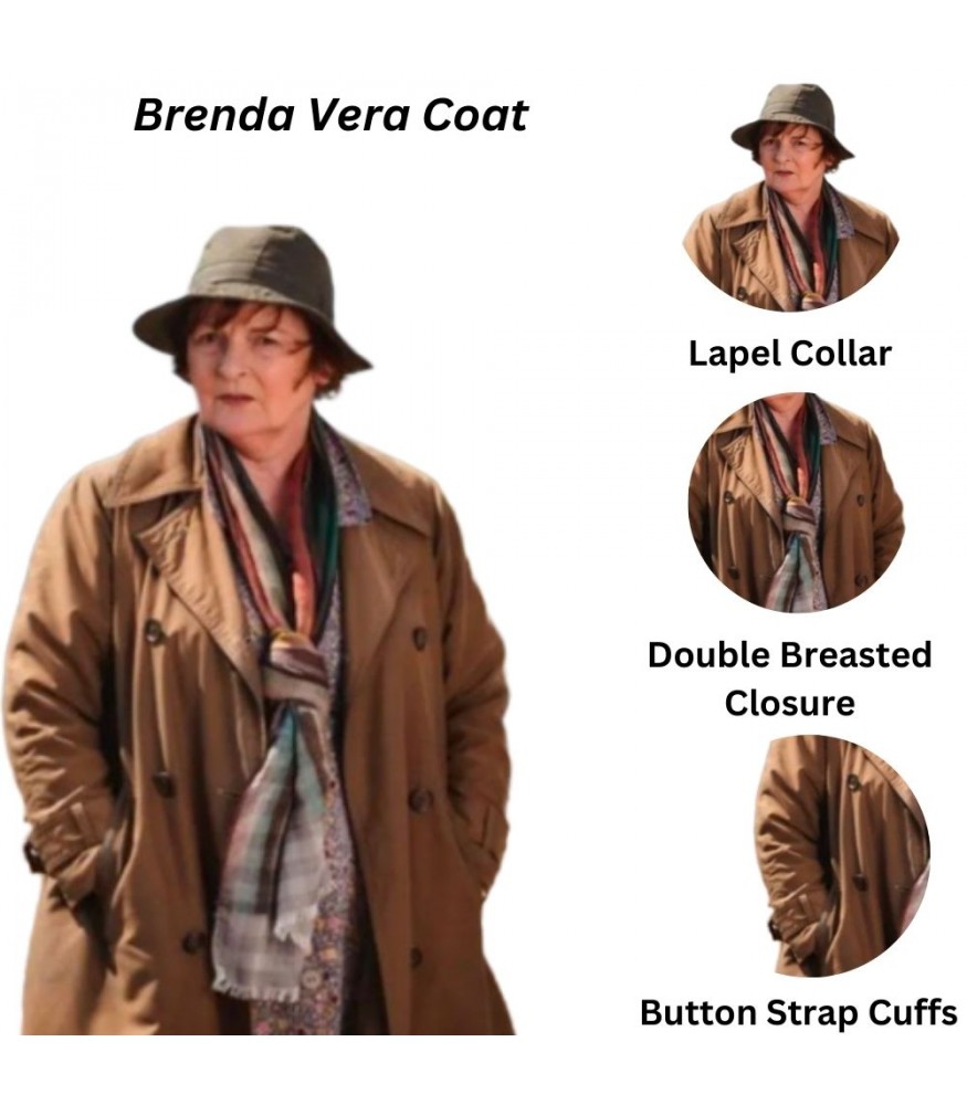 Brenda Blethyn perfectly brought this extraordinary Vera trench coat into existence in her fantasy role as DCI Vera Stanhope in this famous television series. Then, again, this beautiful Vera Stanhope brown double-breasted cotton coat adorned with very strong durability and reliability spells plushness. It's also just a little bit chilly, making it really great for outdoorsy and some casual outings or taking an evening stroll in the cold. Fans of Vera aren't the only ones who appreciate the coat; they also admire the character's unique style.