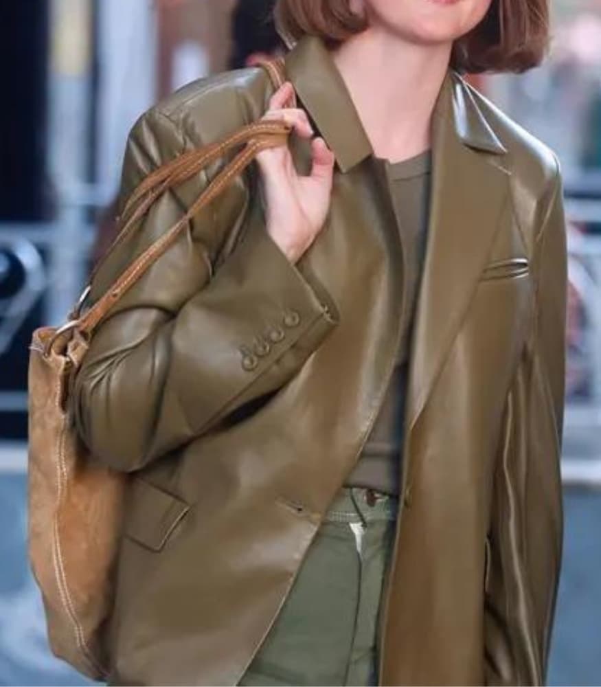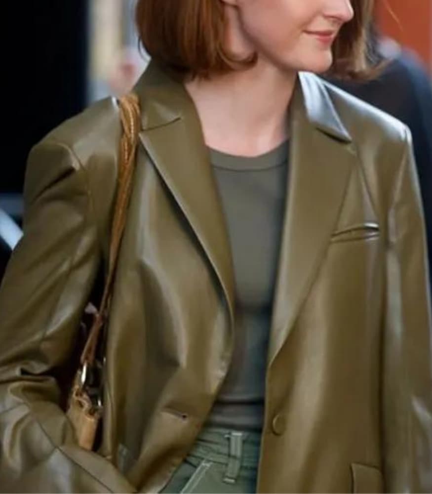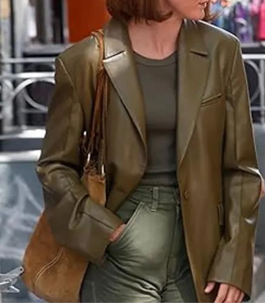 Luxurious Olive Green Leather: Crafted from premium olive green leather, the blazer boasts a luxurious texture that adds a touch of opulence to your ensemble. The rich, earthy hue not only exudes elegance but also ensures versatility, allowing you to effortlessly transition from casual to formal occasions with a single garment.
