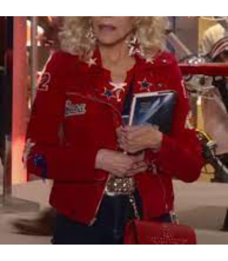 Step into the realm of sartorial excellence with the Jane Fonda Red Jacket, a true embodiment of timeless elegance. Crafted with meticulous attention to detail, this red jacket transcends the ordinary, seamlessly blending classic design with contemporary flair.