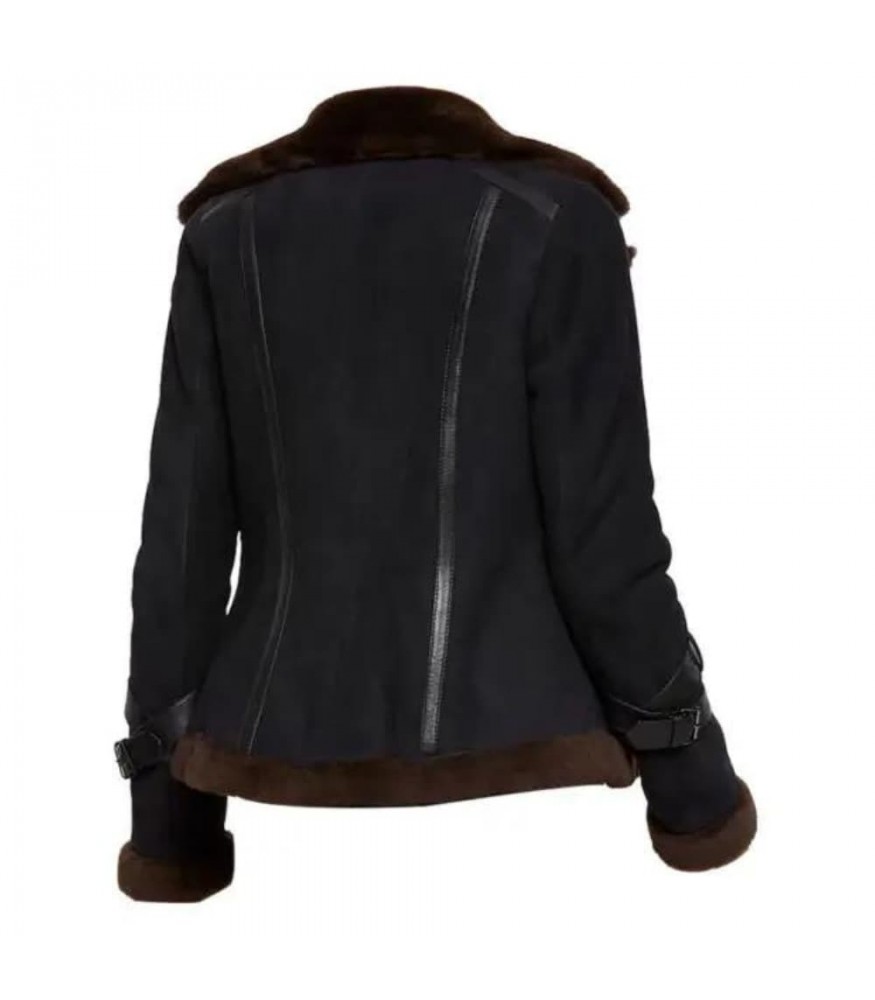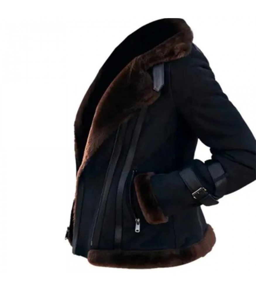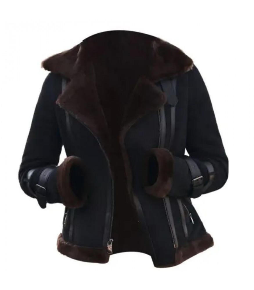 Functional Design Elements: Beyond its aesthetic appeal, the Meghan Aviator Jacket incorporates functional design elements that enhance its overall utility. The front zipper closure provides easy wear, and the ribbed cuffs and hem offer a snug fit while preventing cold drafts. The shearling fur-trimmed collar adds an extra layer of warmth and style.