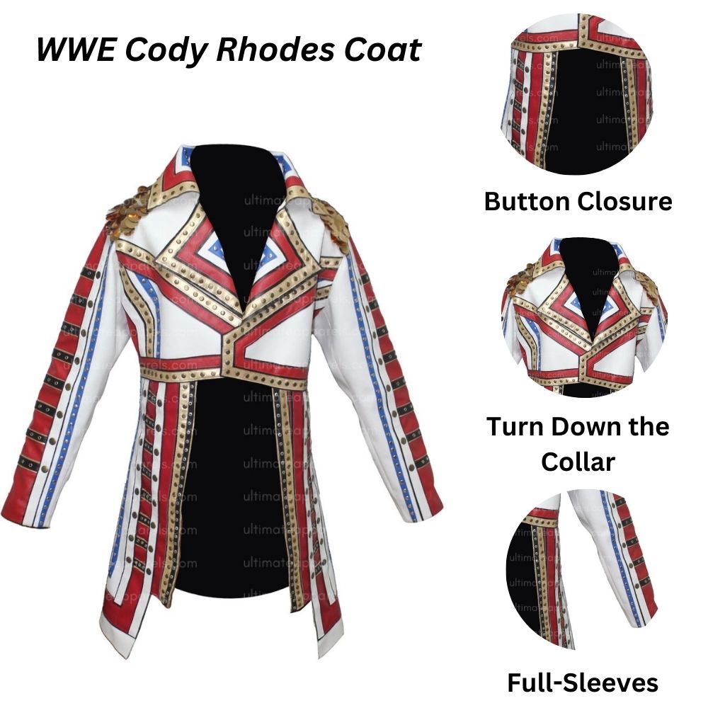 Wrestling enthusiasts simply cannot do without this coat. Illuminated with splendid leatherwork, the Cody Rhodes costume has detailing like no other and boasts an audacious military white design exuding WWE’s American nightmare persona. Fit to be called a Cody Rhodes jacket, it is a perfect blend of elegant style and superstar glamor! Talk about cosplay, being there for WWE matches, or making a statement on the street; the WWE Cody Rhodes White Military Leather Coat is beyond clothing-it's attitude.