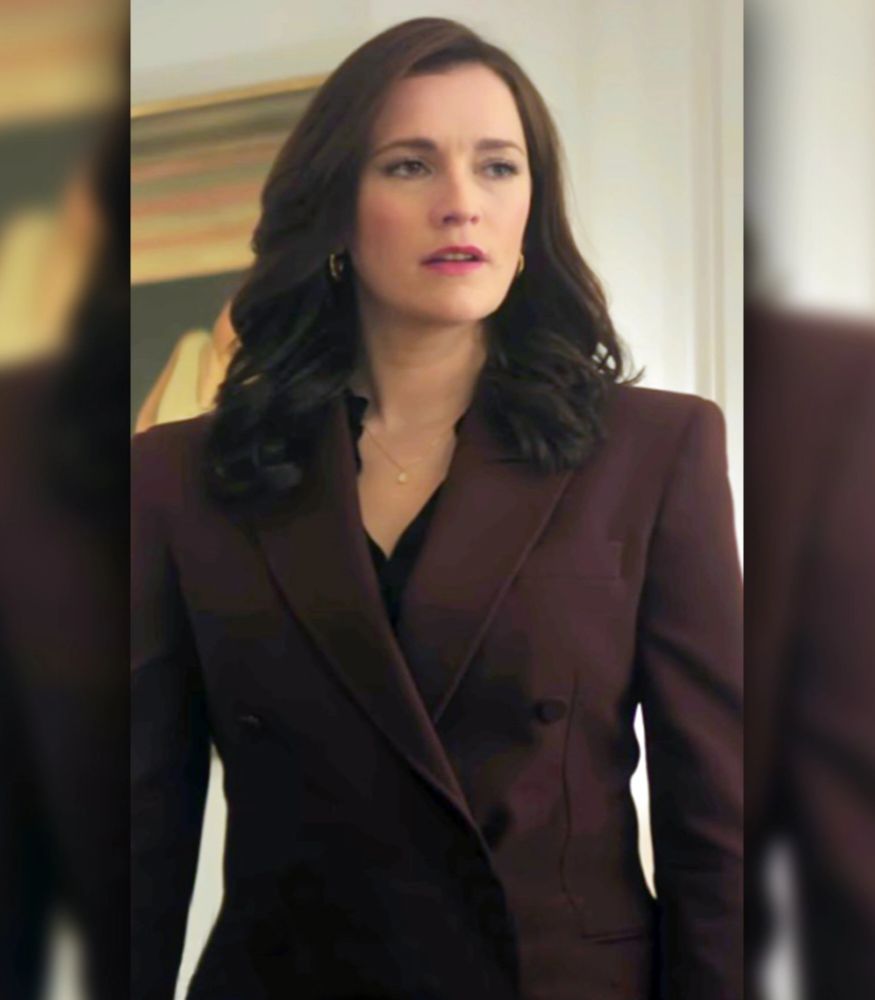 Upgrade your wardrobe with the You S05 Kate Galvin Outfits. Inspired by the modern, polished aesthetic from the show, this blazer is made from high quality suiting fabric featuring a luxurious soft viscose lining, a notch lapel collar, and button closure for a timeless style. The rich maroon color achieves an elegant punch, while the external two pockets and internal pocket add functional details. The full length sleeves and fitted style makes this perfect for either office or smart casual attire.